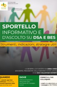 Dal 9 gennaio sarà attivo nel nostro Istituto lo sportello di ascolto gestito dall'Associazione Italiana Dislessia rivolto ad insegnanti e a genitori